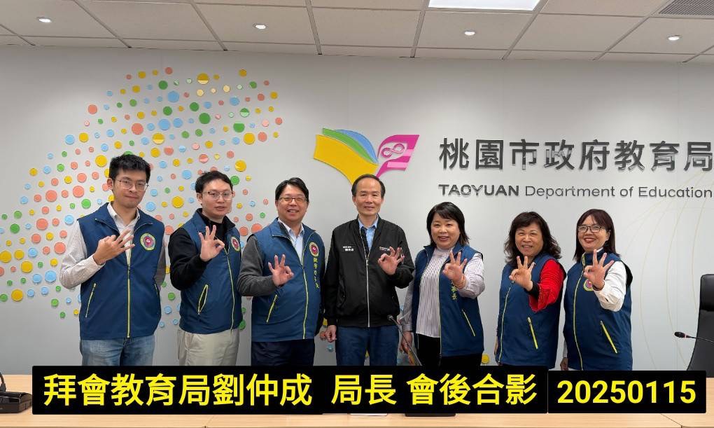 1/15(四)秉蓁理事長、永裕榮譽理事長、順隆副理事長和各位理事們拜訪桃園市教育局局長為補教業發聲